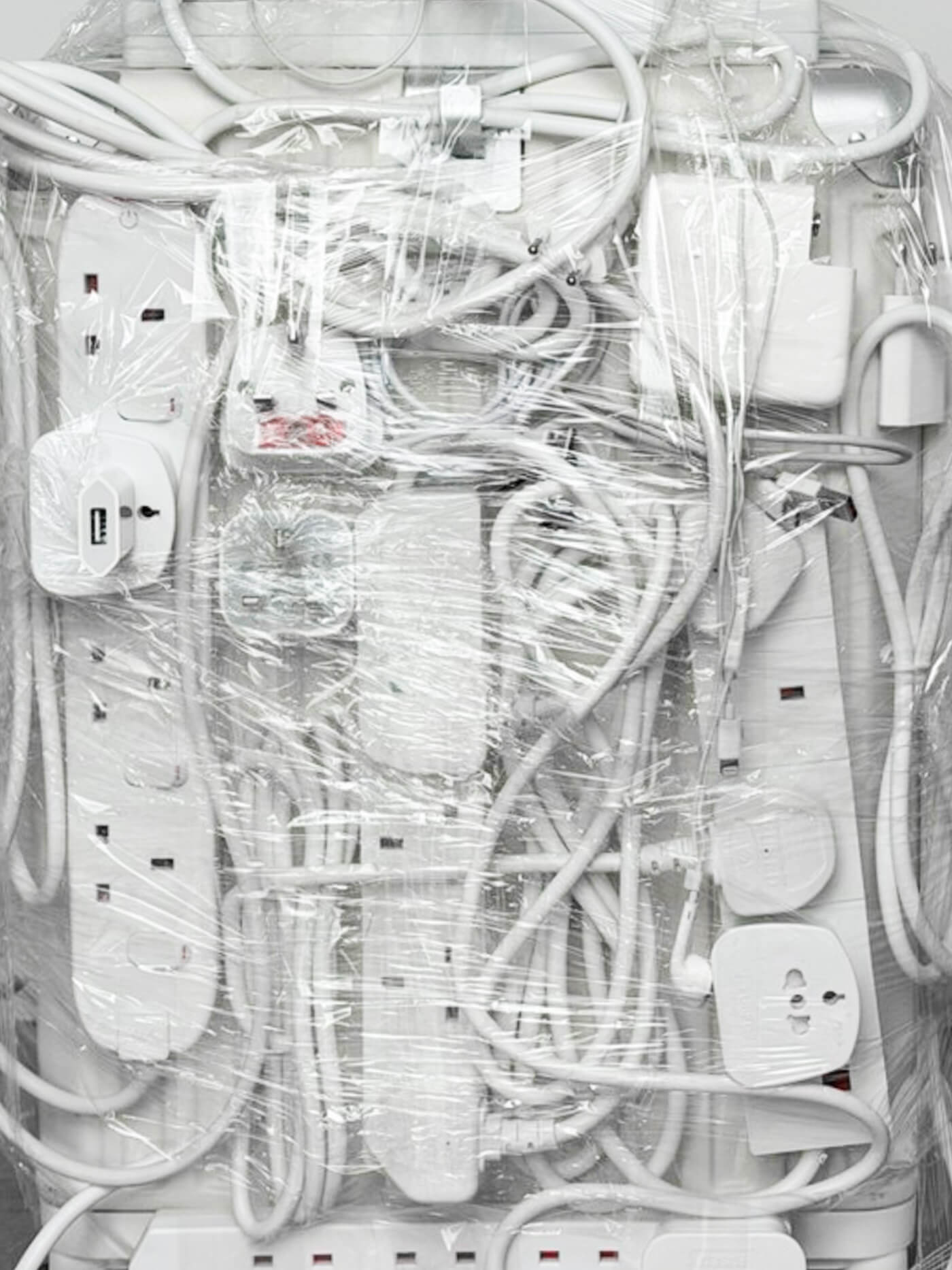 A small suitcase covered in international power adapters - movable monument to constant adjustment. Designed for motion, it’s weighed down by the need to connect and convert, turning the suitcase into a portable infrastructure where belonging is not fixed, but continuously negotiated.