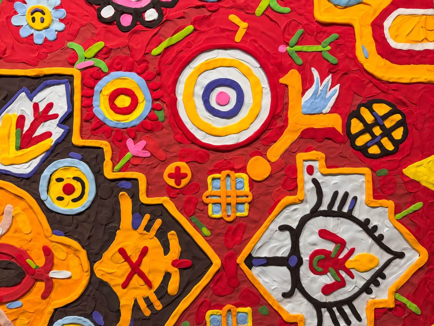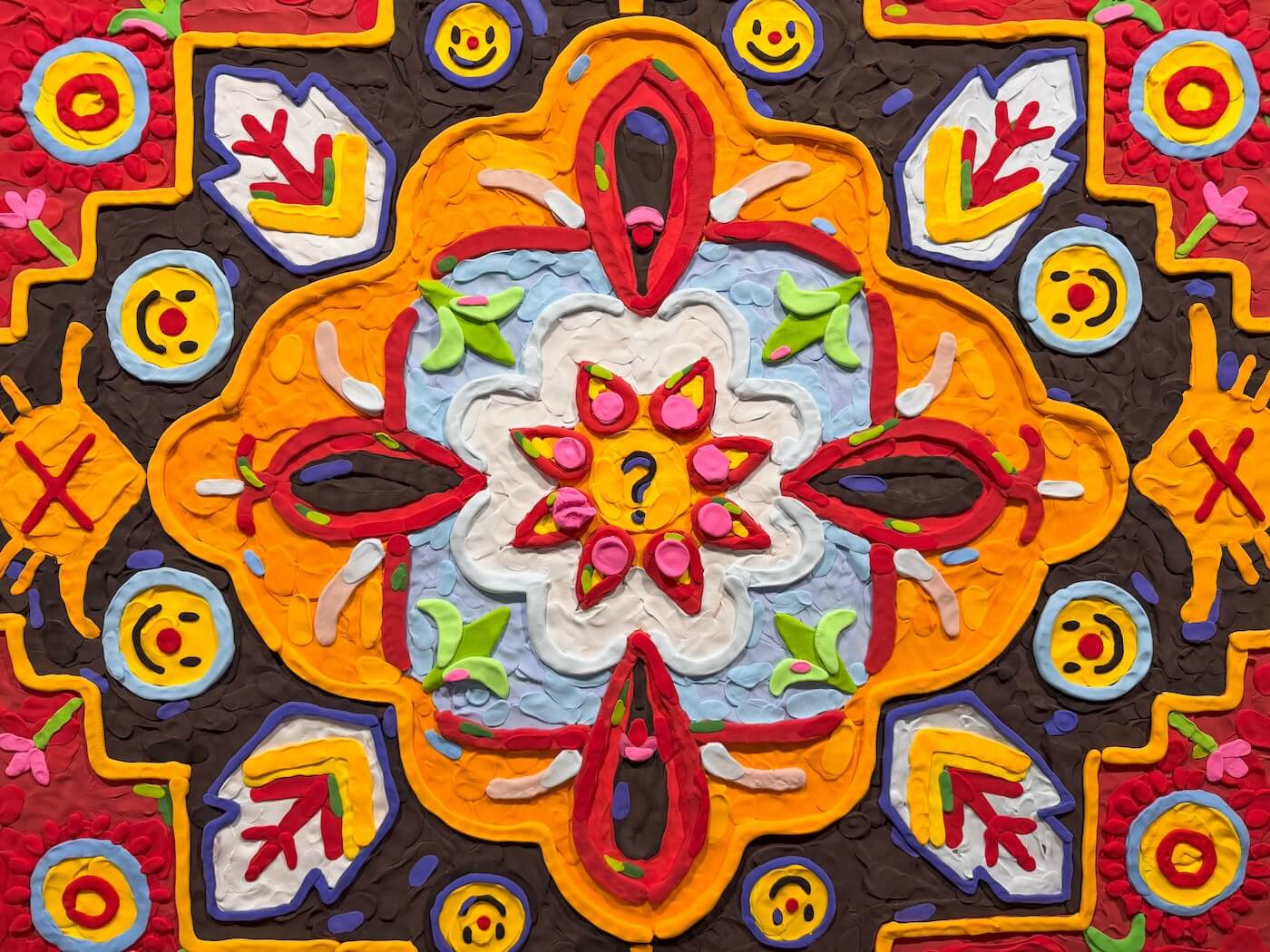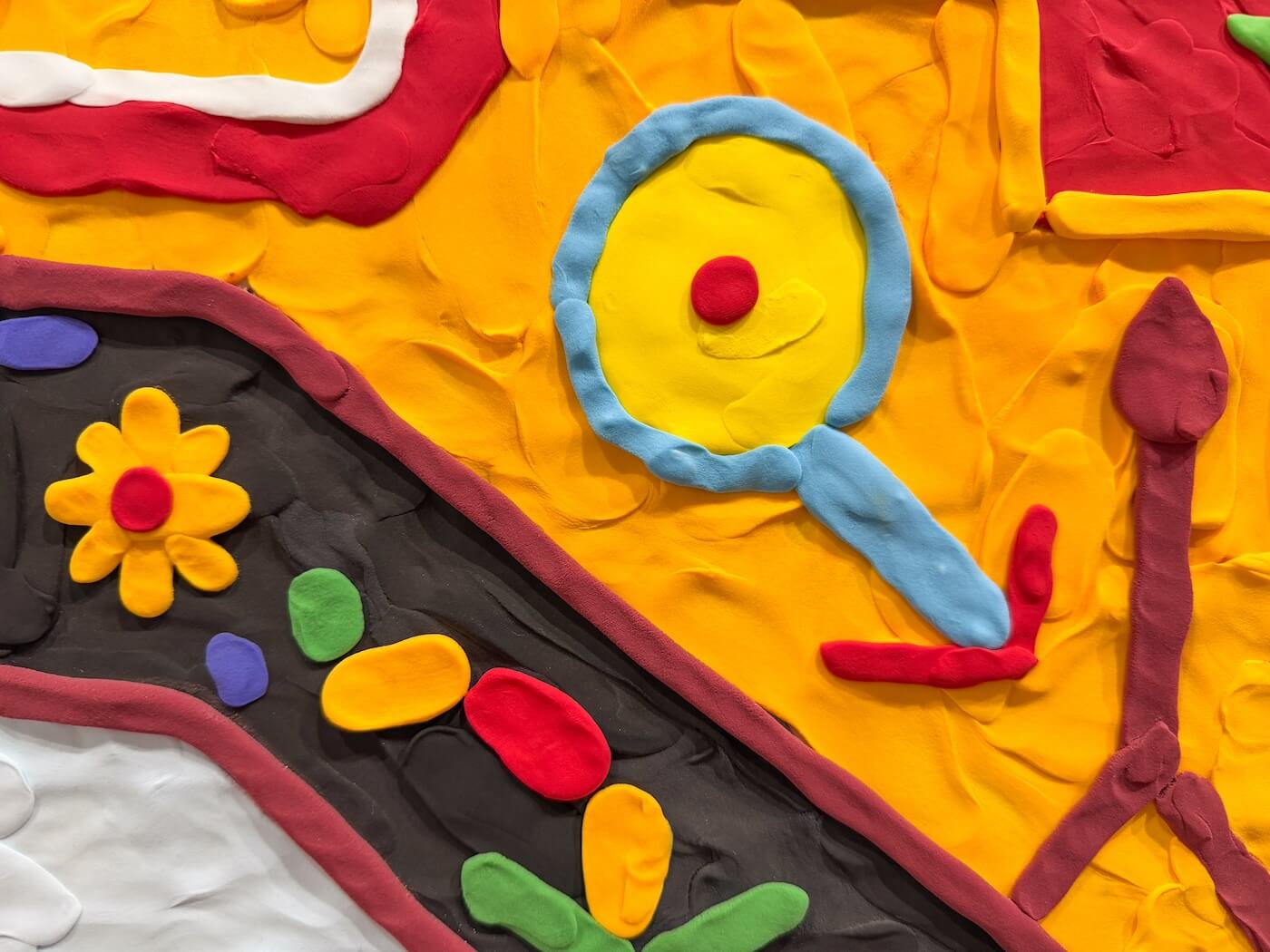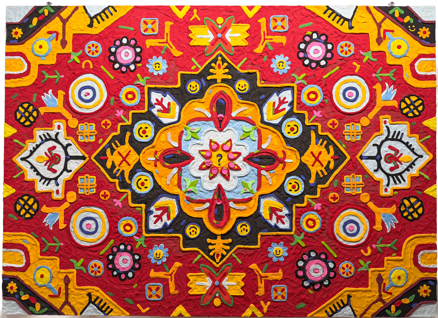 A familiar pattern taken from Lyu’s childhood in Mozhga, Udmurt Republic is repeated in a soft, pliable plasticine, drifting across its plywood base like a memory in motion. Familiar shapes sag and swell, bending into one another, folding comfort into uncertainty. A recollection of familiar silhouettes, it stages home as something mutable - inviting touch, resisting stillness, and quietly reshaping what it means to belong.